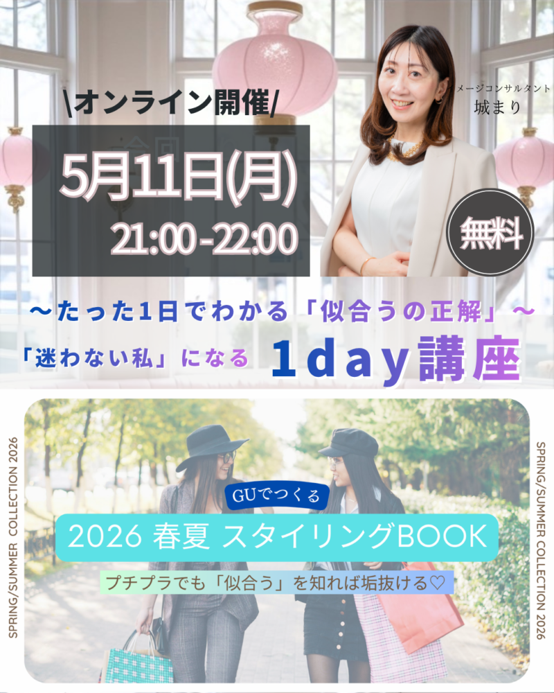 誰にでも似合うは自分には似合っていないということが衝撃でした。無難なものが似合う、のではなく自分らしさもプラスしていきたいなと感じました。