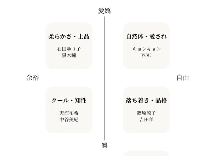 4つの要素(愛嬌/凛 × 余裕/自由)から体系化したものです。